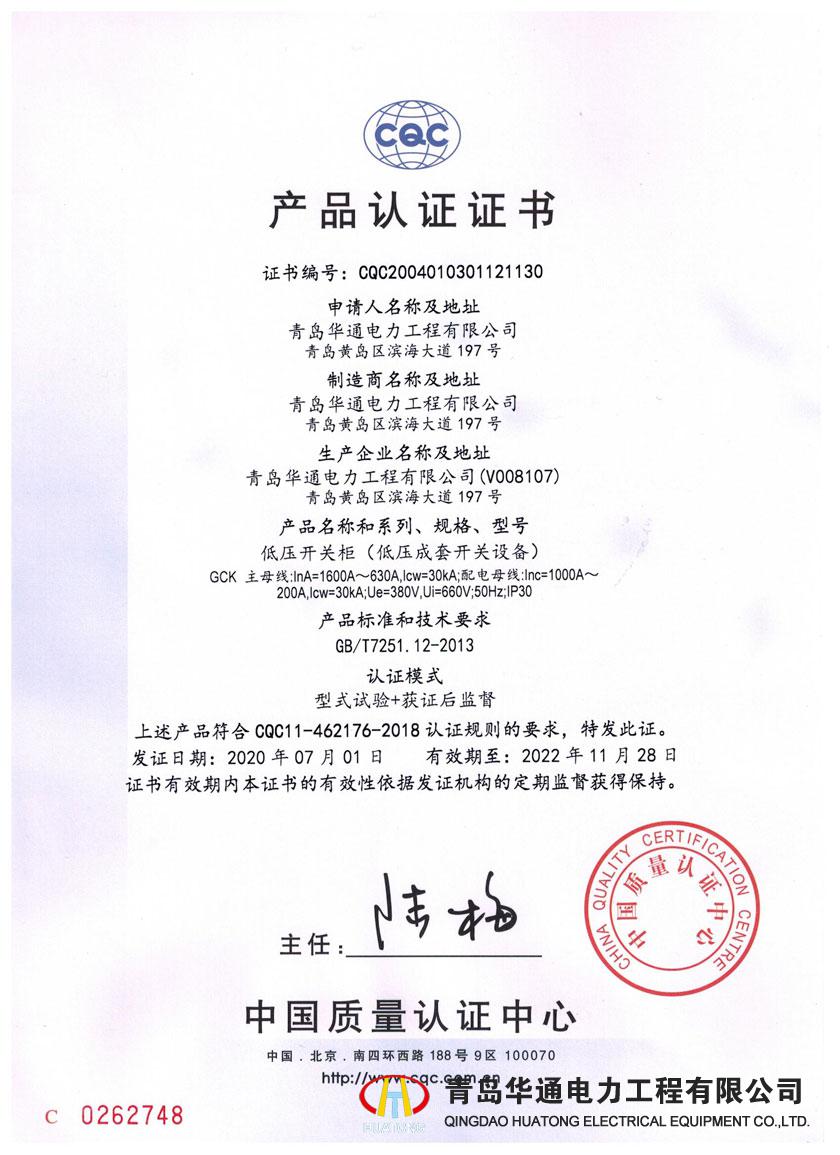 • GCK產品認證證書